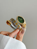 Gloria Divina este o piesă statement dedicată femeii care îmbină rafinamentul cu puterea. Designul său inspirat din formele fluide ale bijuteriilor clasice este completat de accente strălucitoare și o brățară tip snake ce îmbrățișează elegant încheietura.