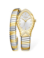 Gloria Divina este o piesă statement dedicată femeii care îmbină rafinamentul cu puterea. Designul său inspirat din formele fluide ale bijuteriilor clasice este completat de accente strălucitoare și o brățară tip snake ce îmbrățișează elegant încheietura.