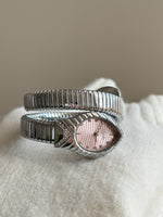Gloria Divina este o piesă statement dedicată femeii care îmbină rafinamentul cu puterea. Designul său inspirat din formele fluide ale bijuteriilor clasice este completat de accente strălucitoare și o brățară tip snake ce îmbrățișează elegant încheietura.