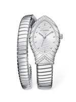 Gloria Divina este o piesă statement dedicată femeii care îmbină rafinamentul cu puterea. Designul său inspirat din formele fluide ale bijuteriilor clasice este completat de accente strălucitoare și o brățară tip snake ce îmbrățișează elegant încheietura.