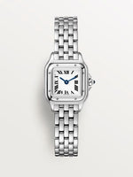 • Detalii: Cadran alb cu cifre romane negre, coroană decorativă cu piatră albastră