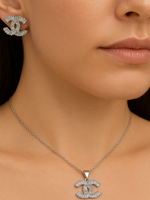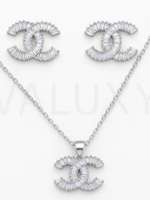 • Detalii: Set format din colier și cercei cu design dublu „C” încrustat cu pietre zirconiu tăietură baguette – simbol al eleganței și rafinamentului