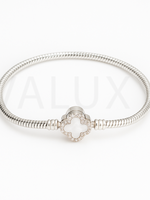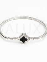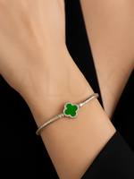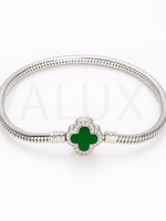 • Detalii: Model tip șarpe cu medalion în formă de trifoi, decorat cu email negru, alb sau verde și înconjurat de zirconii strălucitoare